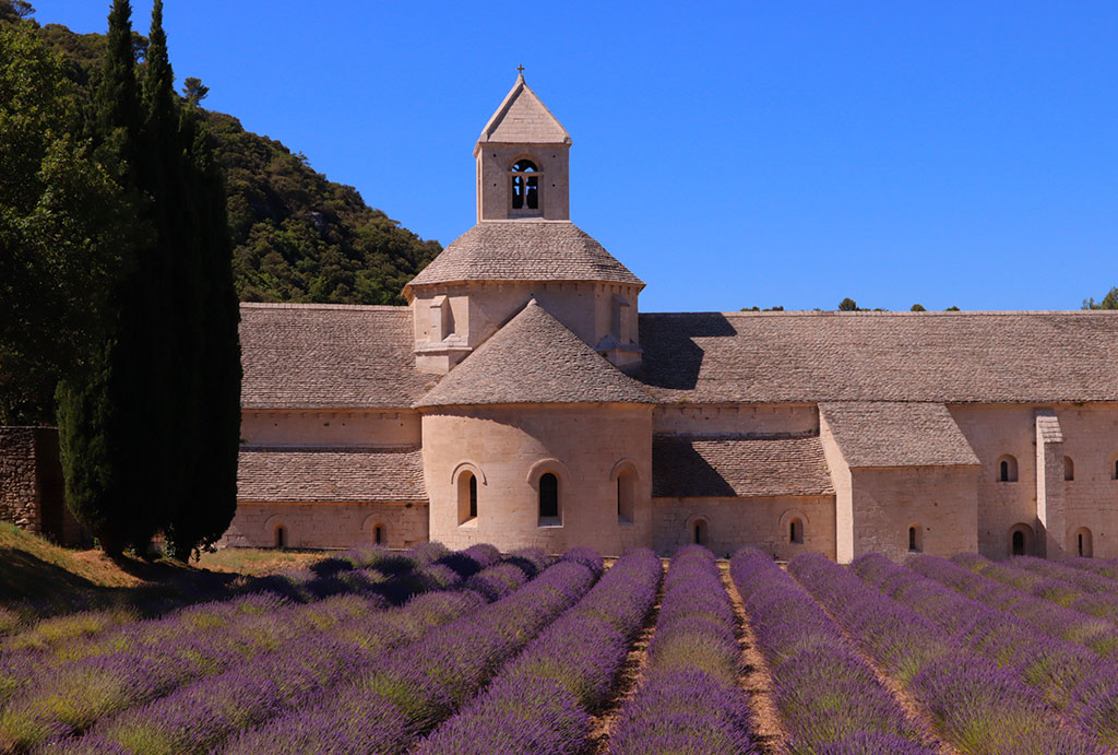 Auf unserem heutigen Programm stehen die Besichtigung der Abbaye Notre-Dame de Sénanque und die Auffahrt auf den, insbesondere bei Radsport begeisterten, bekannten und beliebten Berg Mount Ventoux. Wir sind froh, schon zur Öffnung der Abtei um 9:45 Uhr vor Ort zu sein, denn sie ist ein beliebtes Ausflugsziel für Touristen und ein Reisebus und etliche Autos haben sich bereits auf dem Parkplatz eingefunden. Das wunderschöne Gebäude aus dem 12. Jahrhundert ist idyllisch in einem Tal gelegen und von duftenden Lavendelfeldern umgeben. Bei Eintritt bekommt jeder Besucher ein Tablet ausgehändigt mit dem man sich durch die Räume wie z.B. das Dormitorium, die Kirche oder den Kreuzgang bewegt und welches den Ort mittels 3D-Animation, Video und Augmented Reality in besonderem Maße erlebbar macht. Per Schieberegler stellen sich die leeren Räume wieder möbliert und bewohnt dar und man kann die Klosterbrüder bei ihrem Tagwerk beobachten.