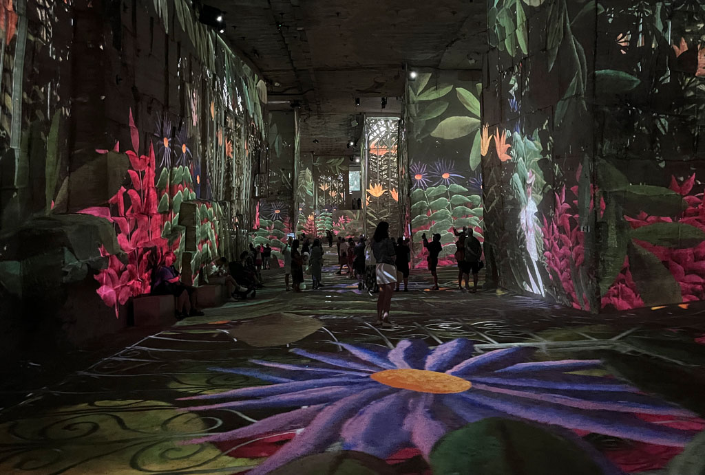 Ein weiteres Highlight in Les Baux-de-Provence sind zweifelsohne die unterirdischen Steinbrüche, die heute als Veranstaltungsort für eine außergewöhnliche Multimediashow genutzt werden. Zahlreiche Videoprojektoren lassen die Kunstwerke von Claude Monet und Jean-Jacques Rousseau für uns auf den riesigen Wänden, Säulen und dem Boden des Steinbruchs lebendig werden. Begleitet wird die immersive Reise in die Welt der beiden Künstler von einer wirkungsvollen Musikkomposition. Wir können uns frei in der weitläufigen Halle bewegen und die Show aus unterschiedlichen Blickwinkeln auf uns wirken lassen oder von den Steinbänken an den Hallenwänden aus genießen. Etwa eine Stunde lang lassen wir uns von den farbenprächtigen Bildern, die auf eine Fläche von ca. 7000 m2 projiziert werden, verzaubern.