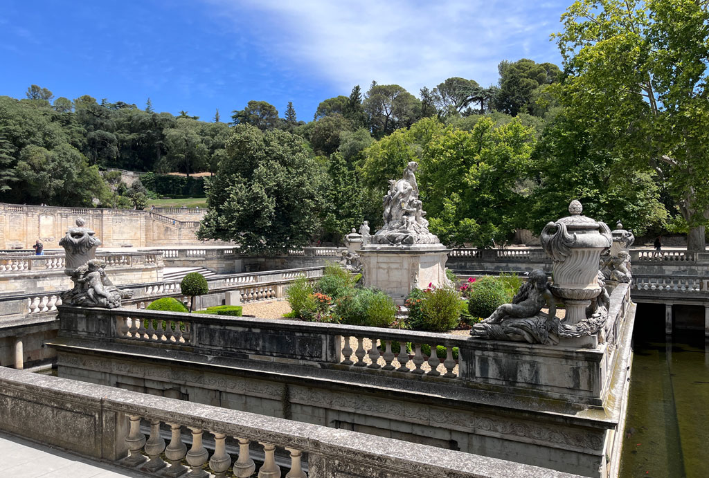 Die ehemalige Römerstadt Nîmes mit ihren gut erhaltenen Bauwerken ist ein weiteres unserer Ziele und der Ausflug hat sich gelohnt. Wir erleben die Stadt als entspannt und von vergleichsweise wenigen anderen Touristen besucht. Gleichzeitig ist es die gepflegteste Innenstadt, die uns bis dato hier in Südfrankreich begegnet ist. Wir erkunden das imposante Amphitheater Arène de Nîmes. Wo einst Gladiatorenkämpfe ausgetragen wurden, finden heute friedlichere Veranstaltungen wie z.B. Konzerte statt. Auf dem Weg zum Jardin de la Fontaine, einem prachtvollen Park aus dem 17. Jahrhundert statten wir der Kirche Eglise Saint-Paul und dem römischen Tempel Maison Carée einen Besuch ab. Mitten auf dem Plaza de la Maison erhebt sich das beeindruckende Monument, welches zu Ehren der Adoptivsöhne des ersten römischen Kaisers Augustus erbaut wurde. Am Canal de la Fontaine, in dem sich jede Menge große und kleine Fische tummeln, schlendern wir in den Park und erfreuen uns an den zahlreichen Statuen, Wasserbecken und den Mauerresten des Diane-Tempels.
